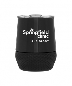 12 oz double wall 18/8 stainless steel thermal tumbler with copper vacuum insulation, push-on lid, matching swivel closure, and removable silicone base.