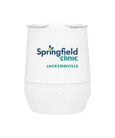 12 oz double wall 18/8 stainless steel thermal tumbler with copper vacuum insulation, push-on lid, matching swivel closure, and removable silicone base.