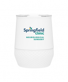 12 oz double wall 18/8 stainless steel thermal tumbler with copper vacuum insulation, push-on lid, matching swivel closure, and removable silicone base.