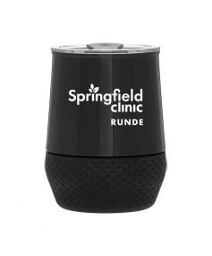 12 oz double wall 18/8 stainless steel thermal tumbler with copper vacuum insulation, push-on lid, matching swivel closure, and removable silicone base.