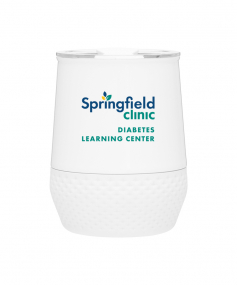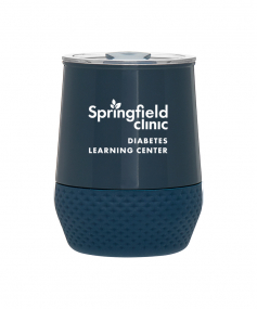 12 oz double wall 18/8 stainless steel thermal tumbler with copper vacuum insulation, push-on lid, matching swivel closure, and removable silicone base.