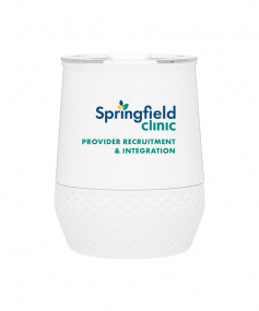 12 oz double wall 18/8 stainless steel thermal tumbler with copper vacuum insulation, push-on lid, matching swivel closure, and removable silicone base.