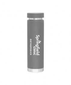 16.9 oz. double wall 18/8 stainless steel thermal bottle with copper vacuum insulation, threaded insulated stainless steel lid, high polish rim and base, and powder coated finish. Hand wash recommended; Do not microwave. Dimensions: 9 3/8 H x 2 5/8".