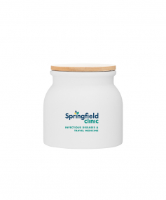16.9 oz stoneware: matte white out / glossy white in with push-on bamboo lid; Hand wash recommended; Microwave safe with non-metallic imprint; 4 3/16 h x 4 3/16 (w/handle) w ; 500mL.