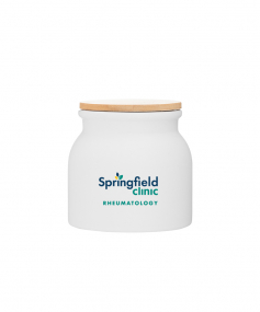 16.9 oz stoneware: matte white out / glossy white in with push-on bamboo lid; Hand wash recommended; Microwave safe with non-metallic imprint; 4 3/16 h x 4 3/16 (w/handle) w ; 500mL.