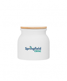 16.9 oz stoneware: matte white out / glossy white in with push-on bamboo lid; Hand wash recommended; Microwave safe with non-metallic imprint; 4 3/16 h x 4 3/16 (w/handle) w ; 500mL.