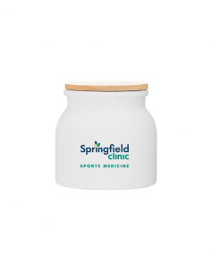 16.9 oz stoneware: matte white out / glossy white in with push-on bamboo lid; Hand wash recommended; Microwave safe with non-metallic imprint; 4 3/16 h x 4 3/16 (w/handle) w ; 500mL.