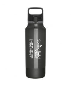 25 oz double wall 18/8 stainless steel thermal bottle with copper vacuum insulation, threaded one-touch push-button lid, locking mechanism, carrying handle, and rubberized base - patent pending - gift box included; Hand wash recommended; Do not microwave; 11 h x 3 w ; 739mL.