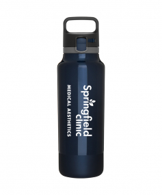 25 oz double wall 18/8 stainless steel thermal bottle with copper vacuum insulation, threaded one-touch push-button lid, locking mechanism, carrying handle, and rubberized base - patent pending - gift box included; Hand wash recommended; Do not microwave; 11 h x 3 w ; 739mL.
