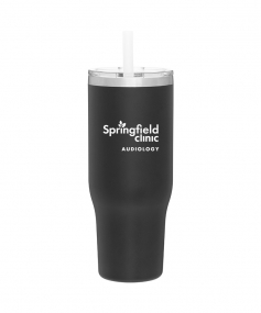 40 oz double wall 18/8 stainless steel thermal tumbler with copper vacuum insulation, stainless steel rim, dual-purpose push-on clear lid, matching sliding closure, flexible wide silicone straw, and powder coated finish
