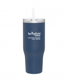 40 oz double wall 18/8 stainless steel thermal tumbler with copper vacuum insulation, stainless steel rim, dual-purpose push-on clear lid, matching sliding closure, flexible wide silicone straw, and powder coated finish