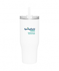 40 oz double wall 18/8 stainless steel thermal tumbler with copper vacuum insulation, stainless steel rim, dual-purpose push-on clear lid, matching sliding closure, flexible wide silicone straw, and powder coated finish