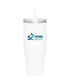 40 oz double wall 18/8 stainless steel thermal tumbler with copper vacuum insulation, stainless steel rim, dual-purpose push-on clear lid, matching sliding closure, flexible wide silicone straw, and powder coated finish