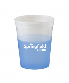Thermo sensitive color changing mood stadium cup is reusable and recyclable. Fits most auto cup holders. This cup is BPA free food grade polypropylene. Great for any occasion where you want a fun item that helps your message stand out. Complies with Prop 65. 4 1/2" H x 3 5/8" Diameter