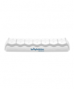 7 rounded compartments provide easy access to pills.