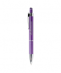 Sleek lines & fine detailing for high end appeal. High gloss fashion colors with shining silver accents. Diamond etched knurled grip & smooth writing black ink for writing comfort. Complies with Prop 65. 5.43" L x 5.43" L x 5" Diameter