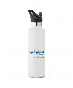 20 oz. Narrow-mouth vacuum-insulated bottle. Features a flip-top straw lid with ergonomic top finger loop. Keeps contents cold for 24 hours. Powder coat finish with copper lining, double wall 18/8 stainless steel, proprietary BPA-free insulated lid. Bottle comes with both screw-on lid and straw lid. 11" H x 2 7/8" Diameter.