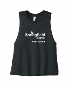 52% combed and ring spun cotton, 48% polyester; 32 singles; Raw arm hole; Racerback; Cropped; Side-seamed; Tear away label;