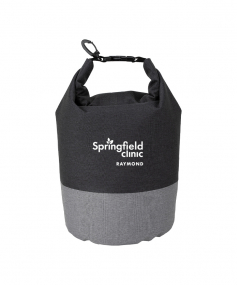 Keeps your items dry and comes in a chic two-tone design. It has a roll top closure with a buckle to connect to other bags and a carabiner clip to connect to a backpack or tether to a raft rope. Made from heathered 300D polyester, it has a 5 liter capacity and can float if dropped in water. Complies with Prop 65. 7" W x 13" H x 7" D