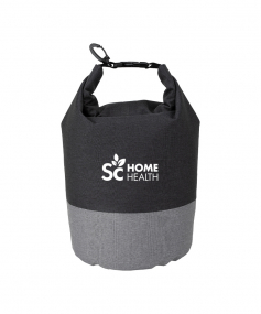 Keeps your items dry and comes in a chic two-tone design. It has a roll top closure with a buckle to connect to other bags and a carabiner clip to connect to a backpack or tether to a raft rope. Made from heathered 300D polyester, it has a 5 liter capacity and can float if dropped in water. Complies with Prop 65. 7" W x 13" H x 7" D
