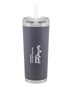 24 oz double wall 18/8 stainless steel thermal tumbler with copper vacuum insulation, stainless steel rim and base, threaded Eastman Tritan lid, snap closure, straw opening, and flexible wide silicone straw.