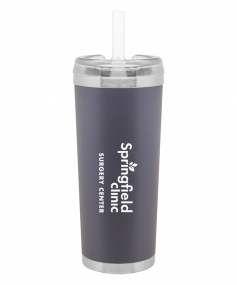 24 oz double wall 18/8 stainless steel thermal tumbler with copper vacuum insulation, stainless steel rim and base, threaded Eastman Tritan lid, snap closure, straw opening, and flexible wide silicone straw.
