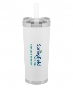 24 oz double wall 18/8 stainless steel thermal tumbler with copper vacuum insulation, stainless steel rim and base, threaded Eastman Tritan lid, snap closure, straw opening, and flexible wide silicone straw.