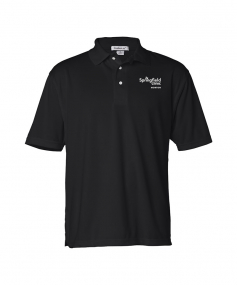 Made of 4.0 Oz., 100% polyester. Features moisture wicking fabric, fashion knit collar with box placket and three white pearlized buttons, and double-needle stitched cuffs and side vents.