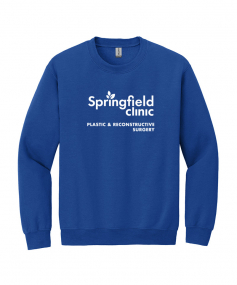 8-ounce, 50/50 cotton/poly. Double-needle stitching at waistband and cuffs. 1x1 rib knit collar, cuffs and waistband with spandex.