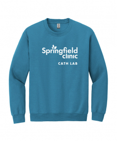 8-ounce, 50/50 cotton/poly. Double-needle stitching at waistband and cuffs. 1x1 rib knit collar, cuffs and waistband with spandex.