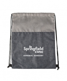 This heathered and faux jute drawstring backpack is constructed of 300D heathered grey polyester making this an upscale and stylish cinch backpack. It's extra thick soft material and comfortable black adjustable drawstring cords puts this at the top of backpack tote bags. Metropolitan in look and universal in appeal, a perfect drawstring backpack for men or women. Complies with Prop 65. 16 1/2" H x 13" W