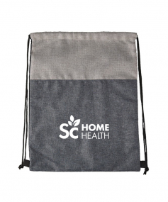 This heathered and faux jute drawstring backpack is constructed of 300D heathered grey polyester making this an upscale and stylish cinch backpack. It's extra thick soft material and comfortable black adjustable drawstring cords puts this at the top of backpack tote bags. Metropolitan in look and universal in appeal, a perfect drawstring backpack for men or women. Complies with Prop 65. 16 1/2" H x 13" W