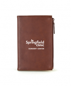 Stylish executive notebook with PU/split leather outer and suede inner cover. Features large zipper pocket (fits up to iPhone 7S Plus). Includes 80-sheet replaceable notebook. 5 3/4" H x 8 1/2" H