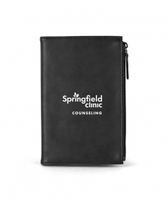 Stylish executive notebook with PU/split leather outer and suede inner cover. Features large zipper pocket (fits up to iPhone 7S Plus). Includes 80-sheet replaceable notebook. 5 3/4" H x 8 1/2" H