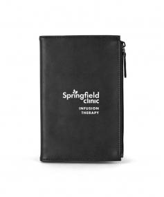 Stylish executive notebook with PU/split leather outer and suede inner cover. Features large zipper pocket (fits up to iPhone 7S Plus). Includes 80-sheet replaceable notebook. 5 3/4" H x 8 1/2" H