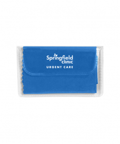6" W x 6" H Cloth. 220 Gram Microfiber. Great For Cleaning Glasses And Device Screens. Complies with Prop 65. 4" W x 2.25" H