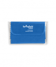 6" W x 6" H Cloth. 220 Gram Microfiber. Great For Cleaning Glasses And Device Screens. Complies with Prop 65. 4" W x 2.25" H