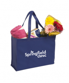 Constructed of 80 gsm non-woven polypropylene with reinforced 22" handles and 6" gusset. Complies with Prop 65. 12" H x 16" W x 6" D