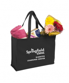 Constructed of 80 gsm non-woven polypropylene with reinforced 22" handles and 6" gusset. Complies with Prop 65. 12" H x 16" W x 6" D