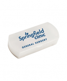 8 Bandages. 3 Separate Compartments. Bottom Slides Open To Access Bandages. Bandages Are Latex Free. Meets FDA Requirements. Complies with Prop 65. 4 1/2" W x 2" H