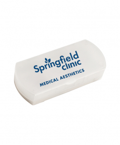 8 Bandages. 3 Separate Compartments. Bottom Slides Open To Access Bandages. Bandages Are Latex Free. Meets FDA Requirements. Complies with Prop 65. 4 1/2" W x 2" H