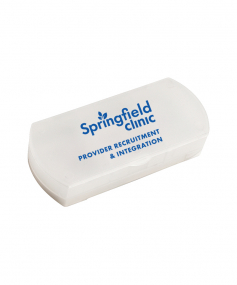 8 Bandages. 3 Separate Compartments. Bottom Slides Open To Access Bandages. Bandages Are Latex Free. Meets FDA Requirements. Complies with Prop 65. 4 1/2" W x 2" H