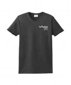 6.1 Oz. 100% Soft Spun Cotton. 98/2 Cotton/Poly (Ash). 90/10 Cotton/Poly (Athletic Heather). Shorter Cut Through The Body And Sleeves For A More Feminine Fit.