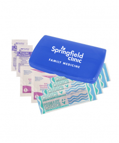 Ultra-trim case contains 4-latex-free bandages, 2-antiseptic towelettes and 2-first aid cream packets. Complies with Prop 65. 2 9/16" W x 4 1/8" H x 1/2" D
