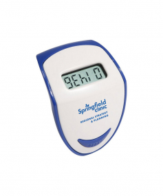Step Hero Pedometer tracks up to 99,999 steps, with Imperial or Metric measuring settings and features top-view LCD display, energy-saving auto shut-off and idle mode and secure belt clip. Powered by non-replaceable battery. Complies with CE, Prop 65. 1.625" L x 1.125" W x 1.375" H