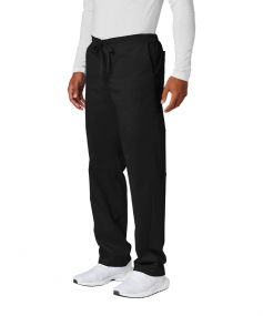These are WonderWink Unisex WorkFlex Cargo Pant. Features 65/35 poly/cotton, mechanical stretch, flat front full drawstring and half-back elastic waistband, front slash pockets and right side cargo pockets. These pants have a class fit and a straight leg. Also features a single back pocket, 31'' inseam.